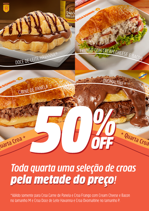 Em 1997 nasceu a Croasonho, um produto com massa de croissant artesanal, fresquinha e crocante, acompanhada de recheios surpreendentes e coberturas de dar água na boca. Hoje, é sucesso por onde passa, inclusive nas redes sociais, onde se concentram mais de 1 milhão de Croalovers – os seguidores que se identificam com os produtos oferecidos e com o DNA da marca: alegre e descontraída.